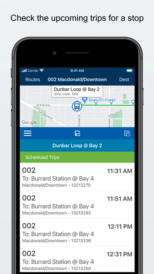 Get the upcoming bus arrival for Vancouver Transit Service