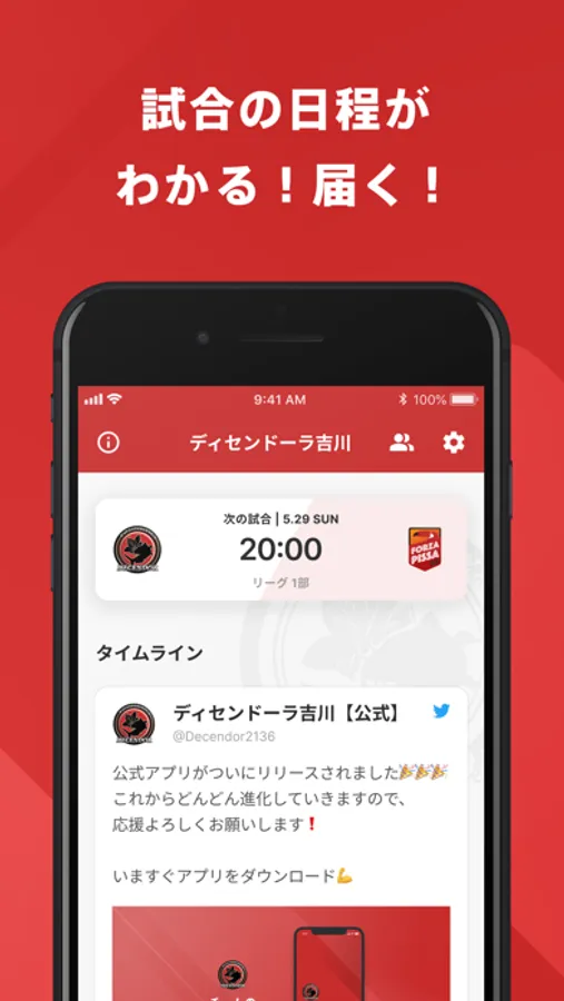 アプリを通じて、チームとの距離がぐっと近くなる。仲間が増える。チームをもっと好きになる!