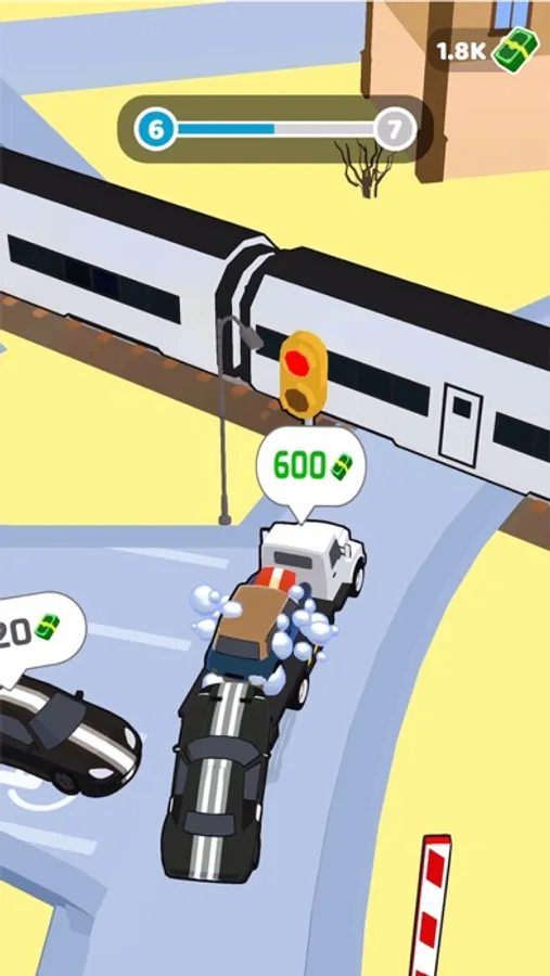 The more cars you collect in your truck, the richer you become. Be careful while towing cars, don't crash into trains or cars on the path.