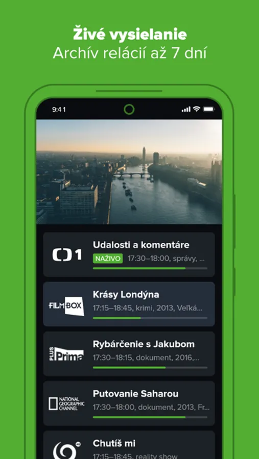 - Živé televízne vysielanie s možnosťou prehrania od začiatku