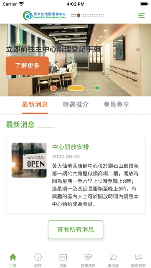 全新推出會員專享功能:個人檔案,健康指數/運動記錄,活動網上報名,體檢預約記錄,訊息匣