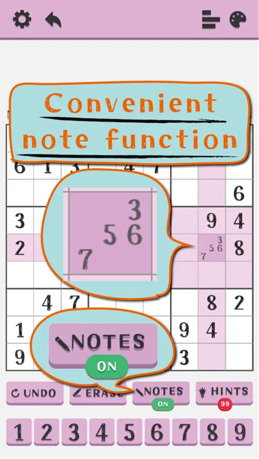 Enjoy standard Sudoku in pastel colors.