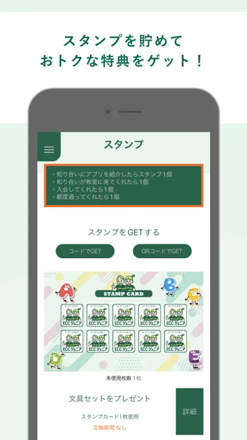 アプリを使ってポイントを溜めることで、勉強に嬉しい文具セットをプレゼント。