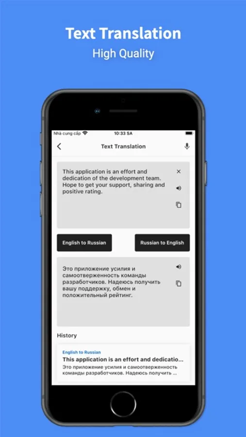 Hi ! EnRus is the leading russian Translator with a lot of outstanding features such as accurate voice translator, translate any text in English to russian or russian to english and extremely useful photo translating feature or support to learn russian easily.