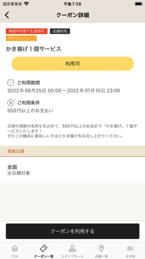 お会計の際、レジのスタッフへクーポン画面をご提示ください。