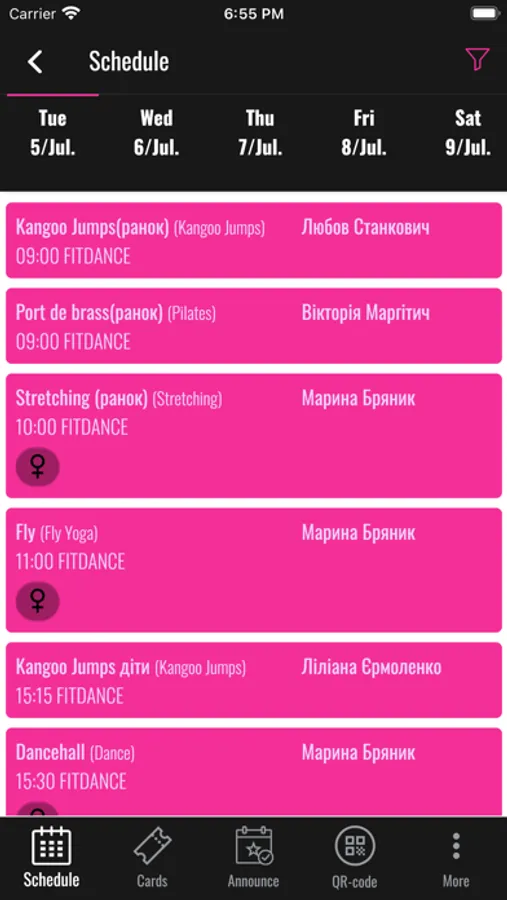 Registration in the club, viewing the schedule and season tickets, signing up for training.