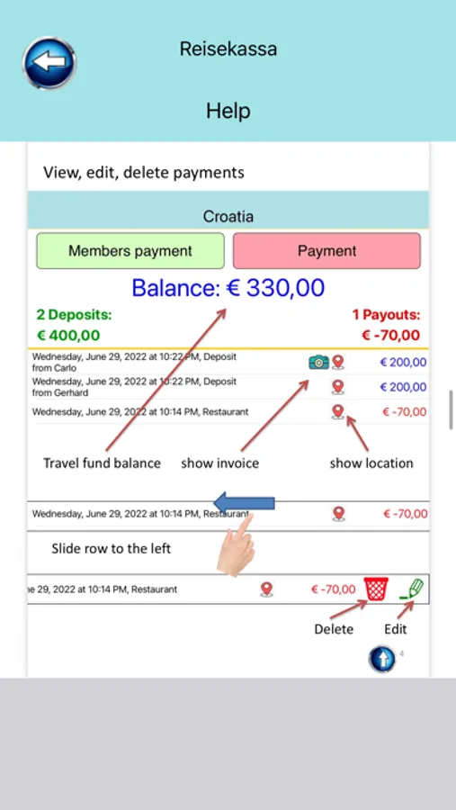 Offline travel expense management for on the go. Simply enter the expenses of the group and always have an overview of who owes whom how much or how much money is still in the till. Also suitable for holidays where you don't use a common cash register, but simply everyone pays once.