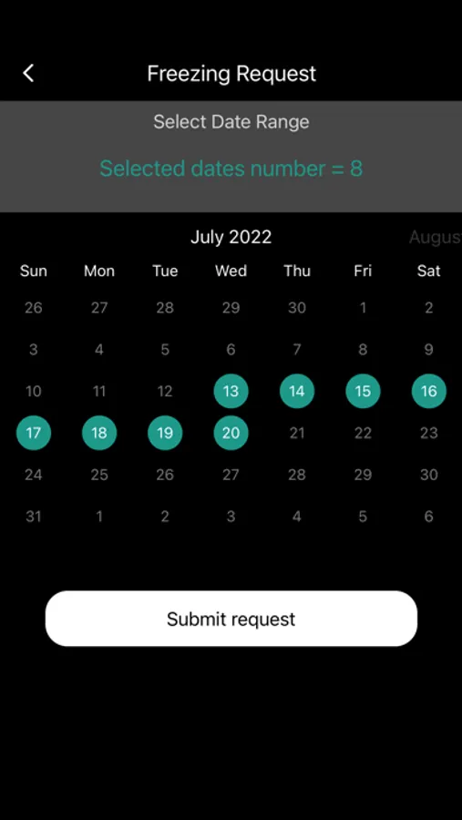 • You can request a freeze on your membership directly through the app with the time and duration If applicable.