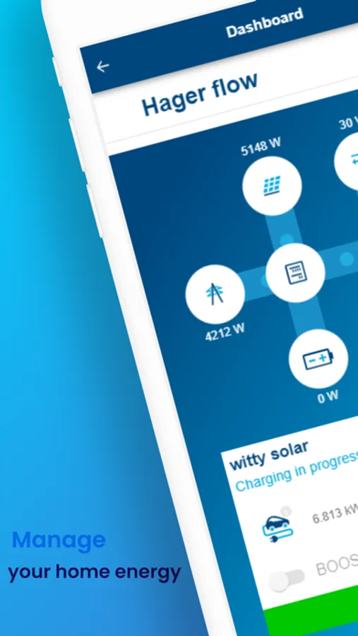 - Do you want to charge your electric vehicle quickly? Activate the boost mode directly via the flow application. Depending on availability, the electric vehicle is then charged with the available photovoltaic electricity and supplemented with mains current as required.