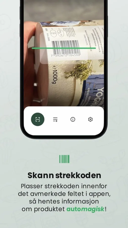 Ved å skanne strekkoden til et produkt vil du få tilgang til allergenene, næringsstoffene og e-stoffer det inneholder.