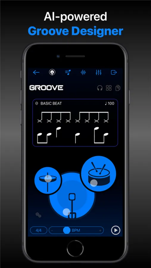 • Powerful Drum Notation: allowing you to learn, generate and edit grooves.