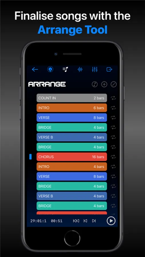 • Structure and finalise your songs with Songzap’s intuitive Arrange tool