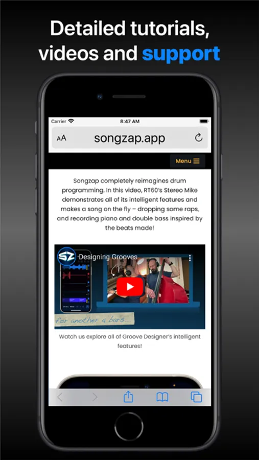 The Songzap website (www.songzap.app) is a one-stop-shop for everything you need to be inspired about music making and getting the best results from Songzap, including: