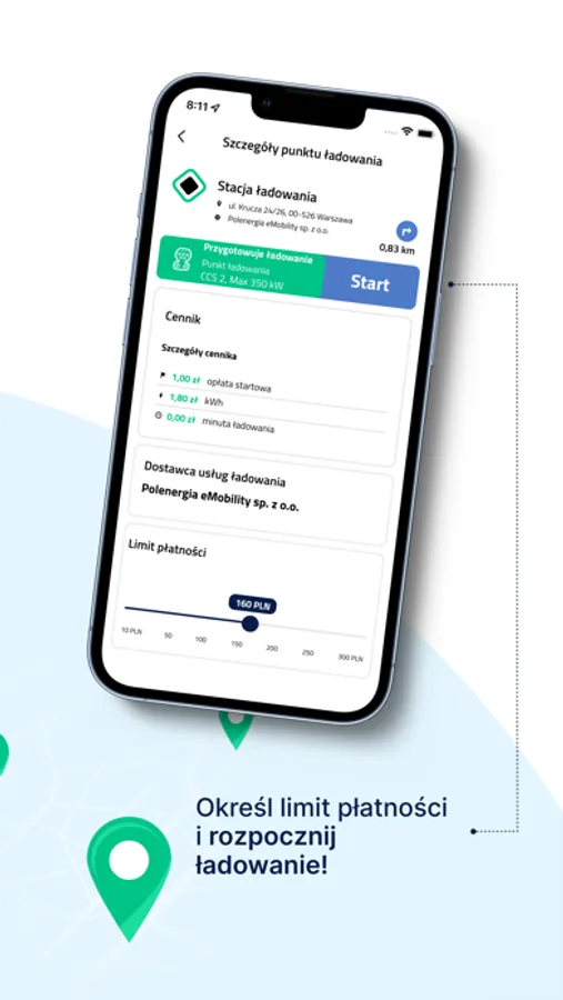 • Sprawdzanie dostępności punktów ładowania z uwzględnieniem ich aktualnego statusu oraz cen