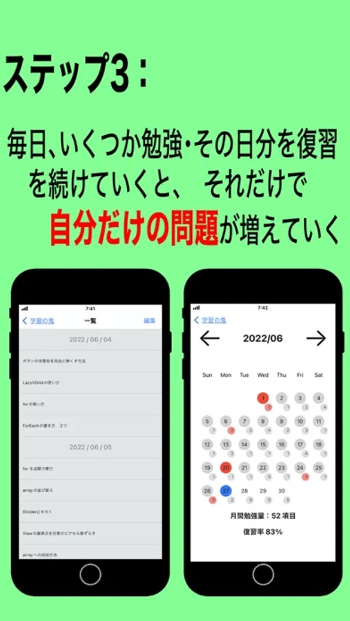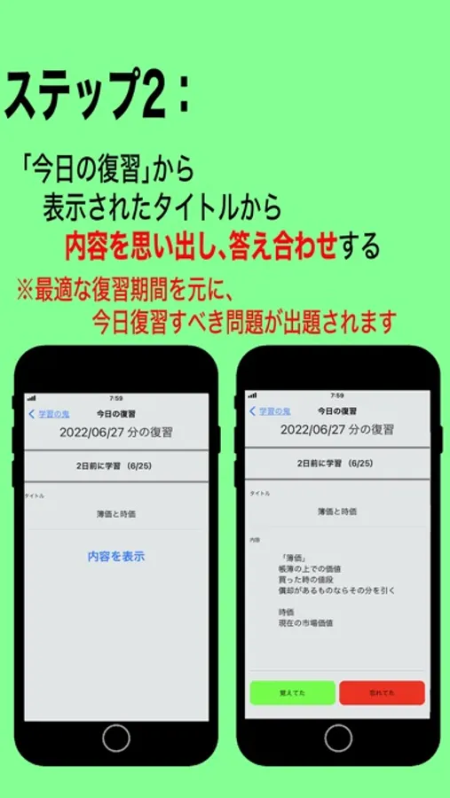 4. From "Today's review", you can easily study the review that you should do today, you can "review in the optimal review period" (distributed learning), and you can incorporate recalls, so it's easy to keep in long-term memories.