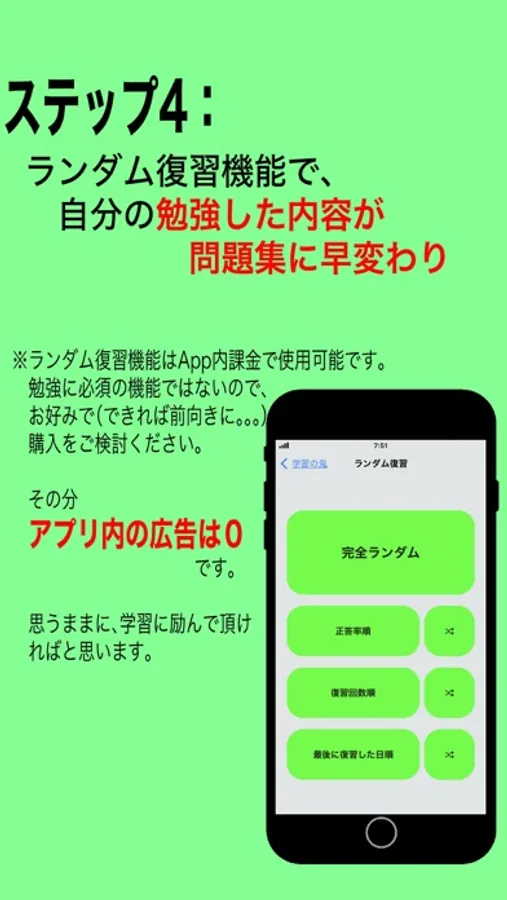 6. With the random review function, you can prioritize those with a low correct answer rate in your usual review, so it's okay even if there are many things that you tend to forget.