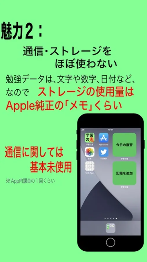 On the contrary, you can check the amount of daily study and the total number of monthly study records, so it is easy to maintain motivation due to a sense of accomplishment, and supports "learning habit".