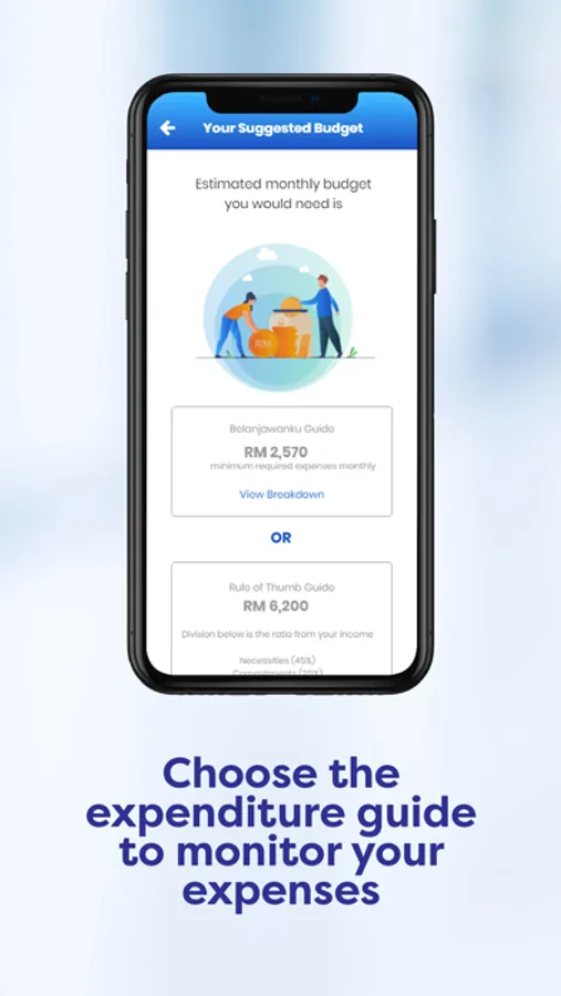2. Budget planning and monitoring – Keeps track of your monthly expenses and allows switching between two budget guides according to your preferences. You can choose between the Belanjawanku or the Rule of Thumb guide when you first set up, or change it any time in your profile.