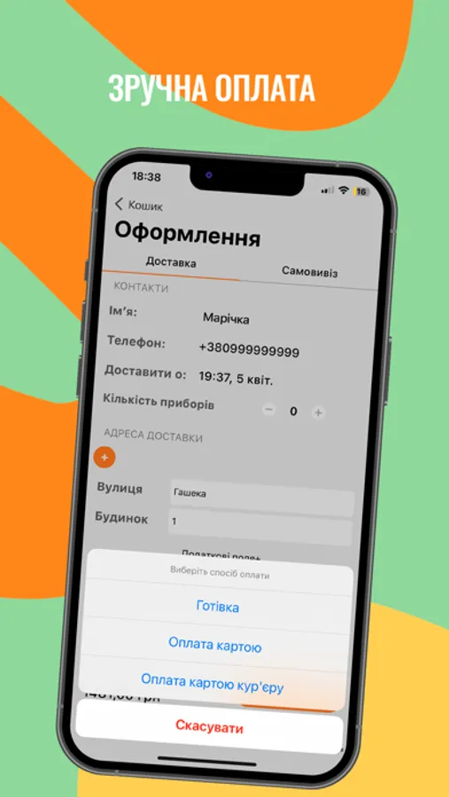 • встановити бажаний час доставки замовлення за вказаною адресою;