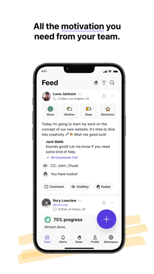 What are their tasks for the day? They connect, no matter where they are. Location-specific information like the weather is tagged to unite a remote workforce and foster a team atmosphere.