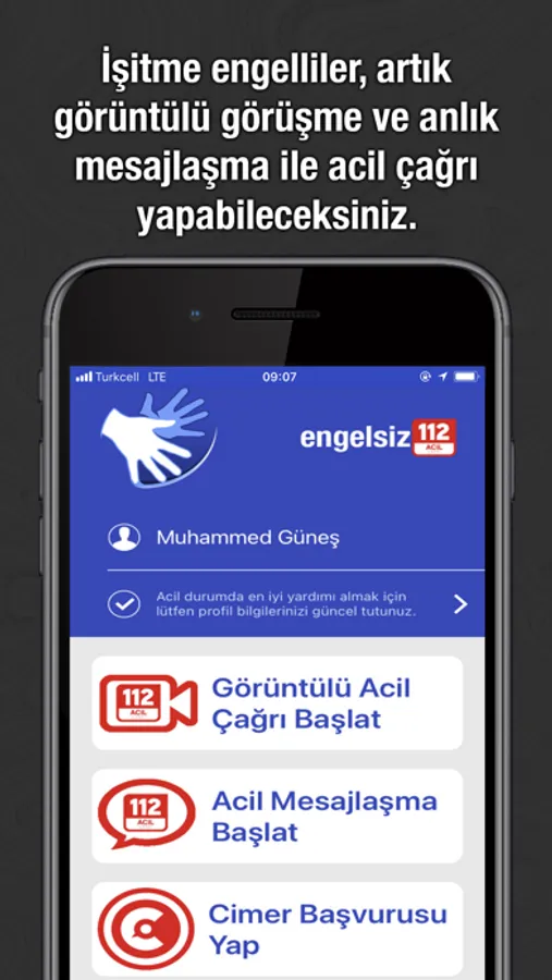İşitme engelliler Cimer başvurlarını Yeni Nesil Engelsiz 112 uygulaması ile yapabilirler.