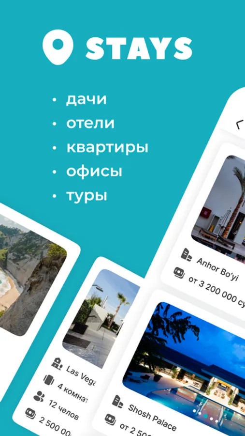 Приложение Stays поможет найти дачи в горах, отели, квартиры, офисы и туры в разных регионах по максимально выгодной цене.