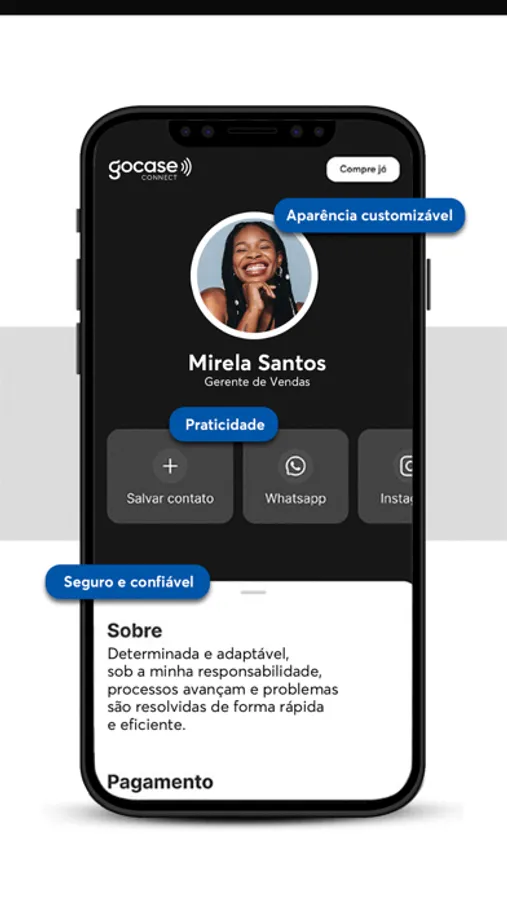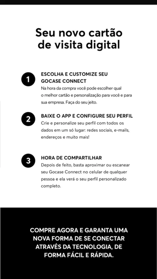 Apresentamos o Gocase Connect - o primeiro cartão de visitas eletrônico totalmente customizável.