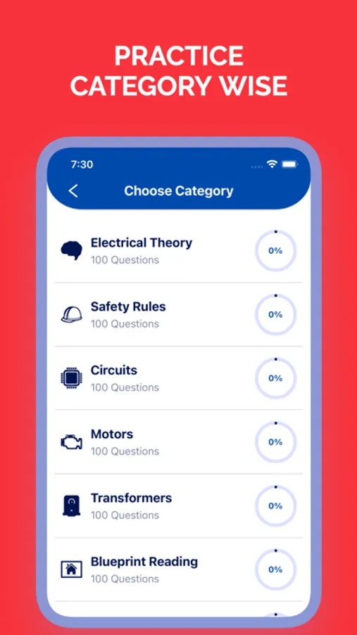 Once you have done enough practice with the questions in different categories, you can Take a quick mock test to check your knowledge on the various subjects like electrical theory and National Electrical Code.