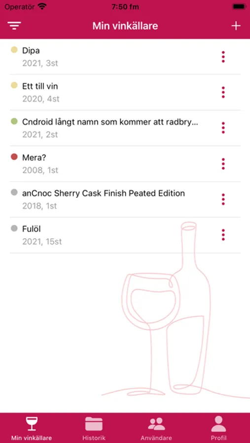 I appen "Vinkällaren" kan du enkelt registrera och hålla koll på din vinsamling. Appen är endast för medlemmar av Munskänkarna.