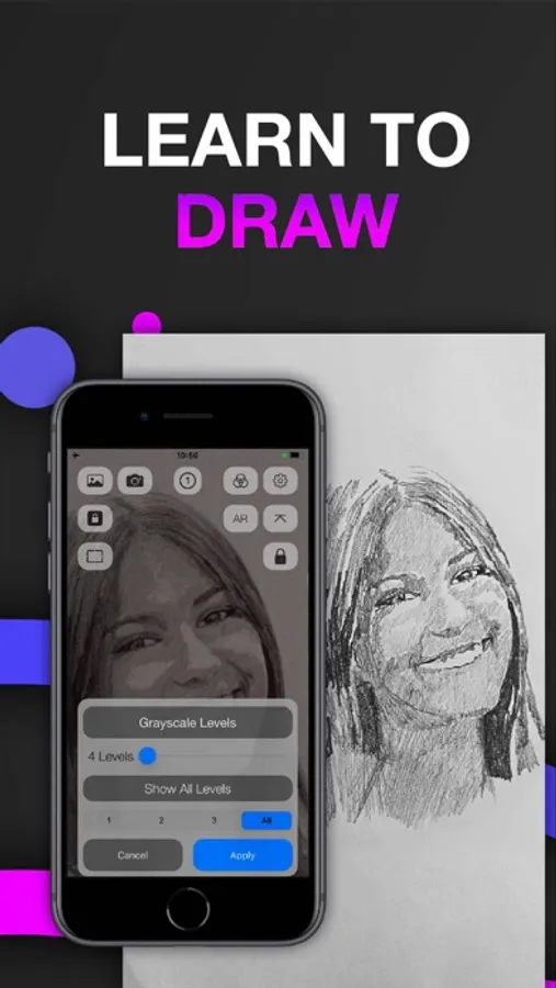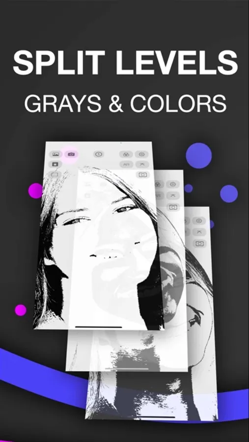 Split photos to different layers, in colors or grayscale, see them one by one individually and trace them on your art to create the final result.