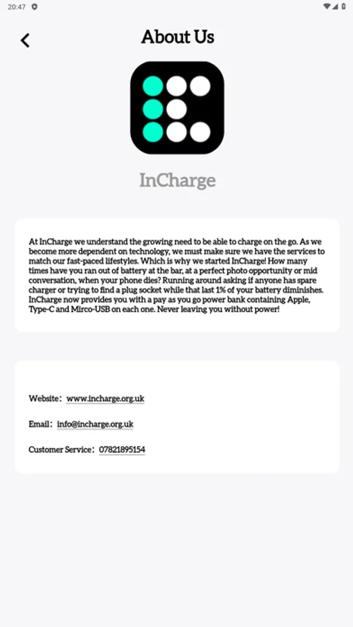 InCharge now provides you with a pay as you go power bank containing Apple, Type-C and Mirco-USB on each one. Never leaving you without power!