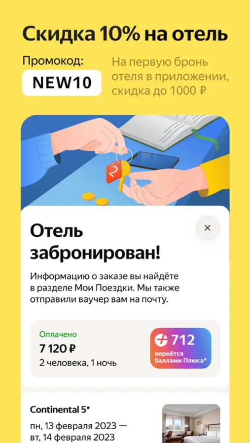 Планируете поездку в Россию или за рубеж? 10 миллионов путешественников ежегодно бронируют отели, билеты и туры с Яндекс Путешествия. Вас ждет скидка 10% на первое бронирование уже сегодня!