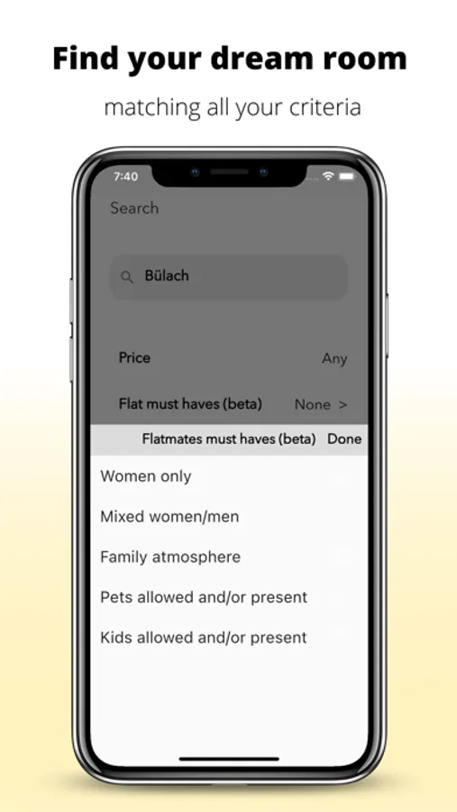 - all shared flats in one app, covers shared flat listings from wgzimmer, flatfox, urbanhome, ronorp and tutti