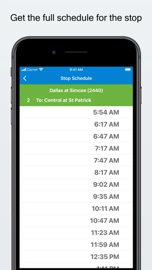 • quick access to upcoming bus with trip headsign and scheduled time