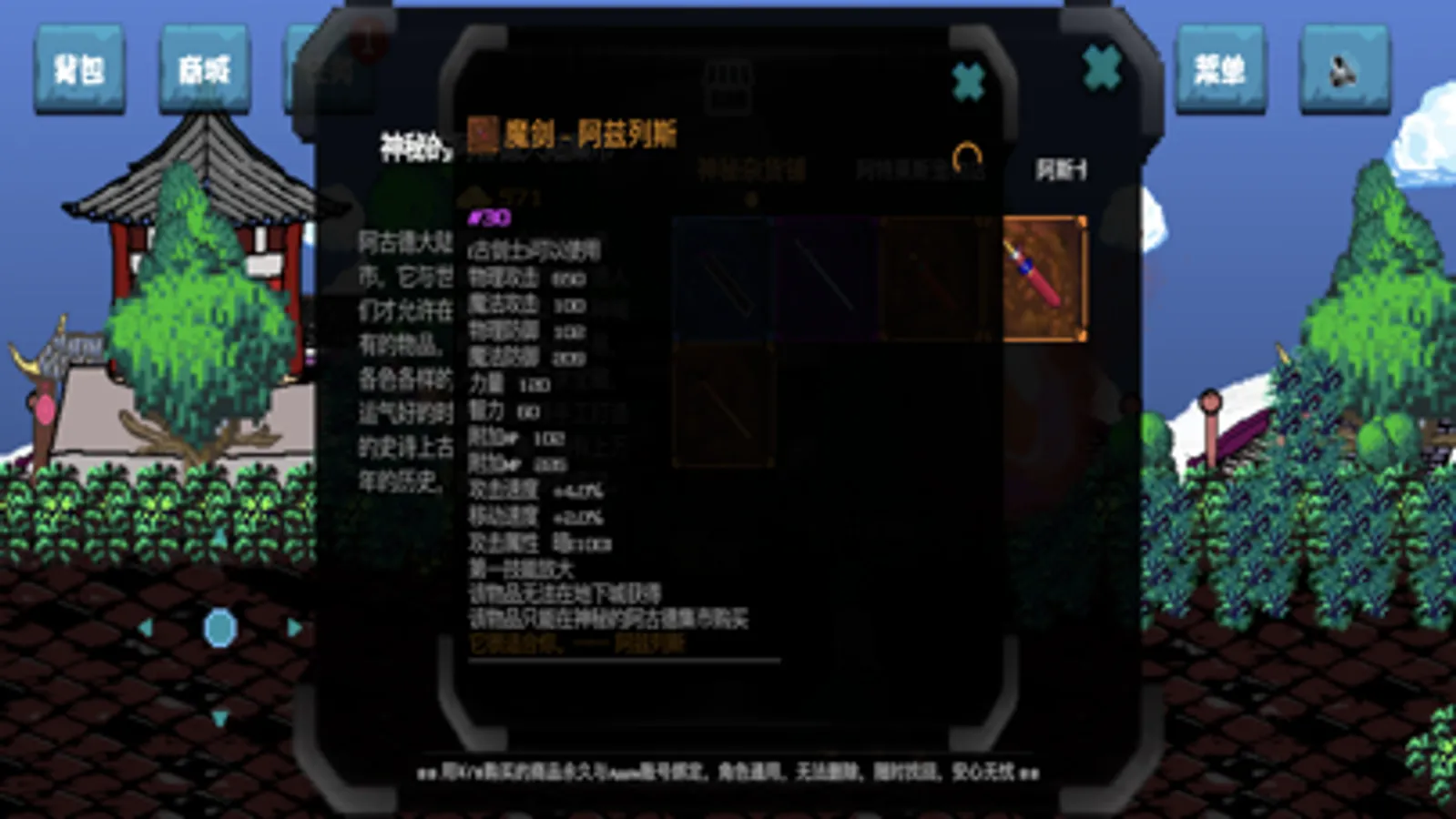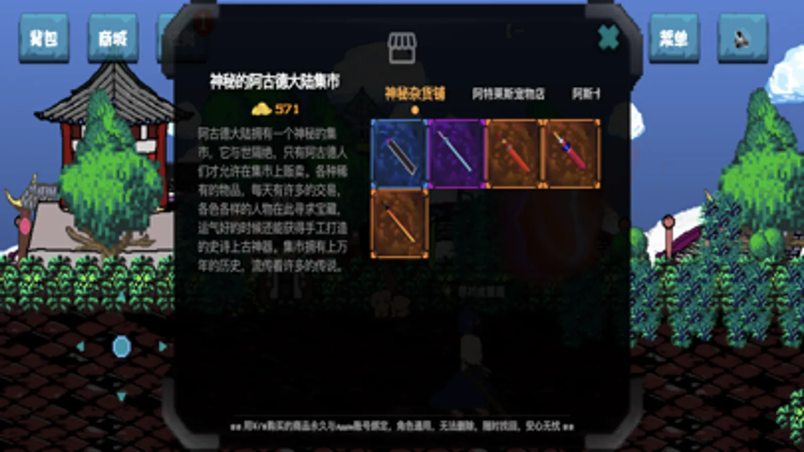 This is a pure hand-crafted stand-alone entertainment app for deep stand-alone enthusiasts. Explore the markets and streets, pets and treasures of the continent of Agud, as well as challenging battle dungeons, and experience the chance to drop the best equipment and the flashing surprise of the flop. A variety of weapons of great collectible value, as well as to understand and learn the legends of the ancient Agud people.