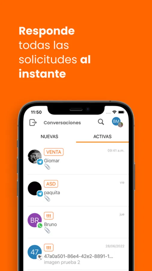 Nuestra plataforma conversacional inteligente simplifica tu trabajo al unificar los chats que tus clientes envían desde apps de mensajería populares (WhatsApp, Messenger, Instagram, Telegram, entre otras) y las administra en un solo lugar, facilita la experiencia de compra y brinda una atención inmediata mediante la automatización de respuestas