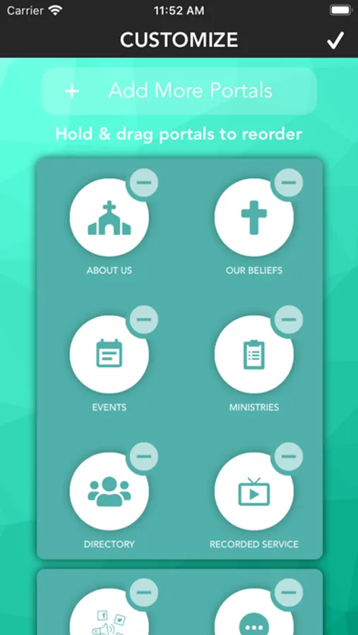 Your Brookside app is fully customizable by you: Rearrange your portals to easily access whichever features you use most. If you want to check school events frequently, you can put that portal front and center. If you never check the directory, you can turn that portal off.