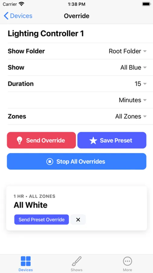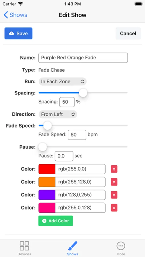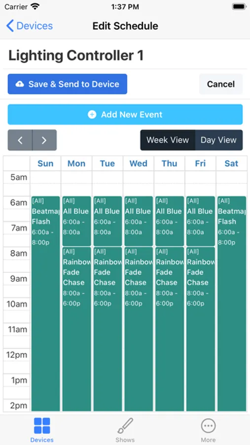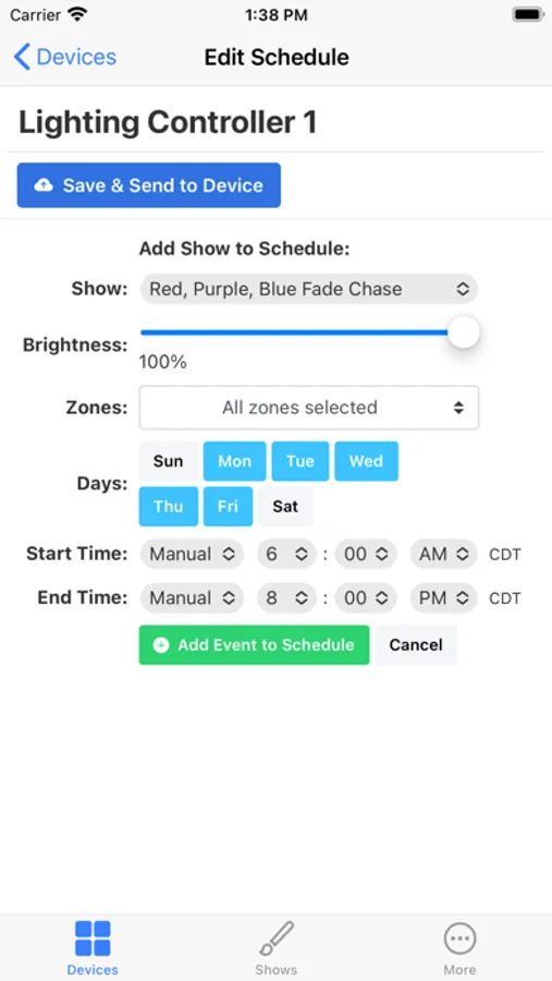 - Split your lights into multiple zones, and schedule different shows for different zones