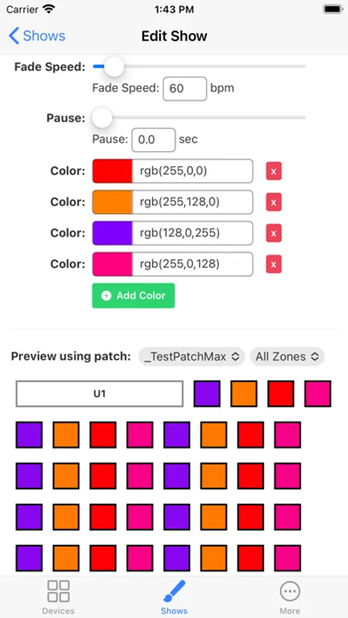 - Choose from a variety of show types, including Static Color, Flash All, Chase, Fade All, Fade Chase, Random Fade, Beatmap Chase, Beatmap Flash, and Beatmap Volume