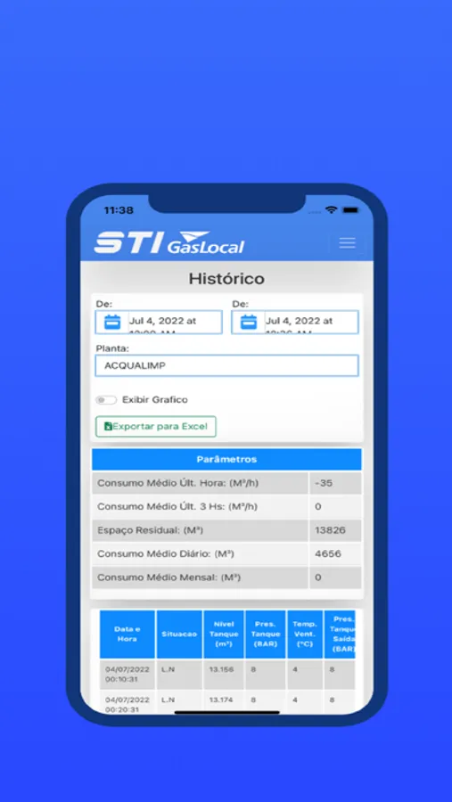 Aplicativo destinado a monitoramento de plantas GNL em tempo real para clientes STI.