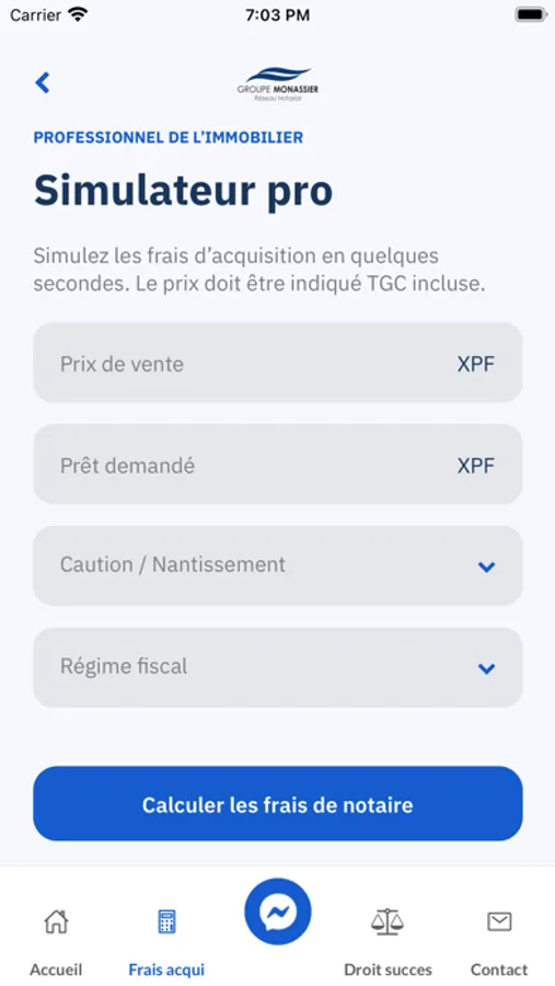 Que vous soyez un particulier ou un professionnel, avec l’application CALNOT Conseil de notaires, vous pouvez en quelques clics calculer les frais d’acquisition de votre prochain bien immobilier grâce au simulateur intégré à l’application.