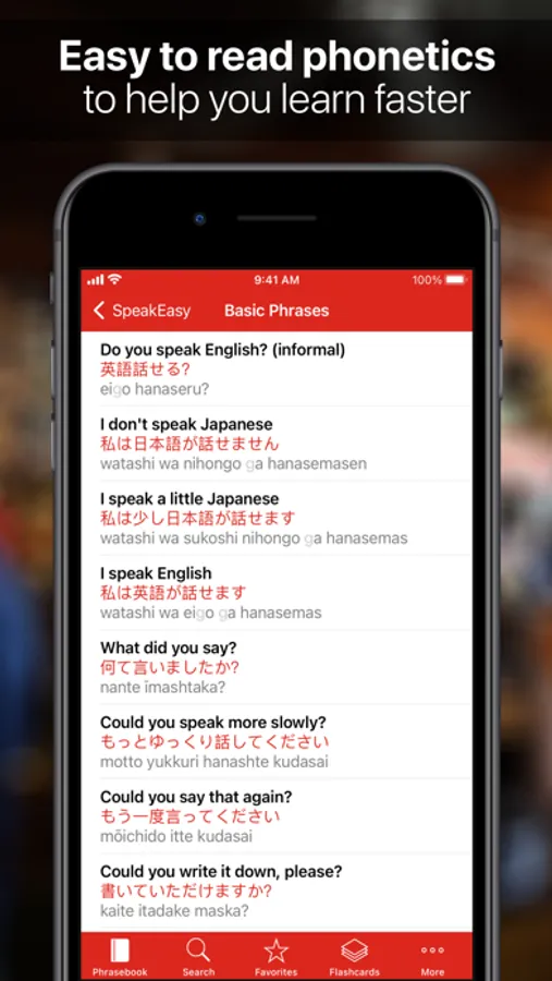 Whether you choose to browse phrases by category, or use the search facility to instantly find what you're looking for, SpeakEasy Japanese is an efficient lifeline when you know what to say but don't know how.