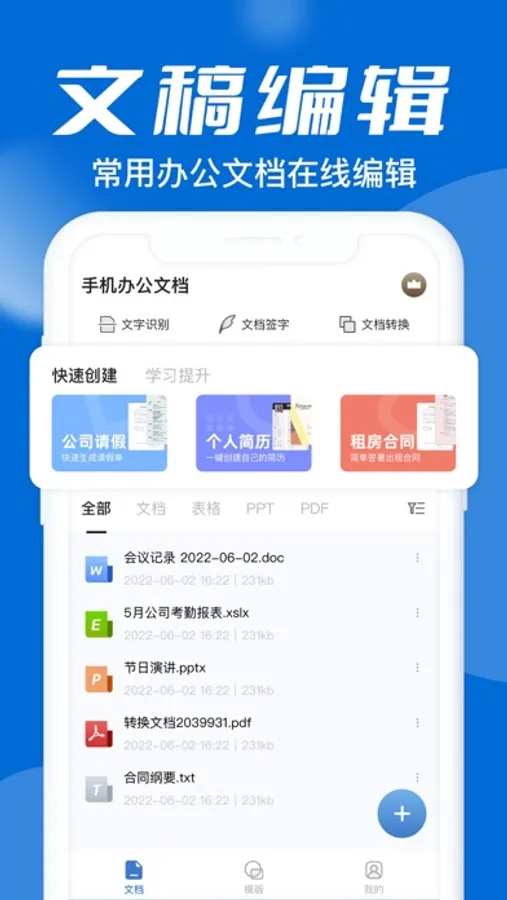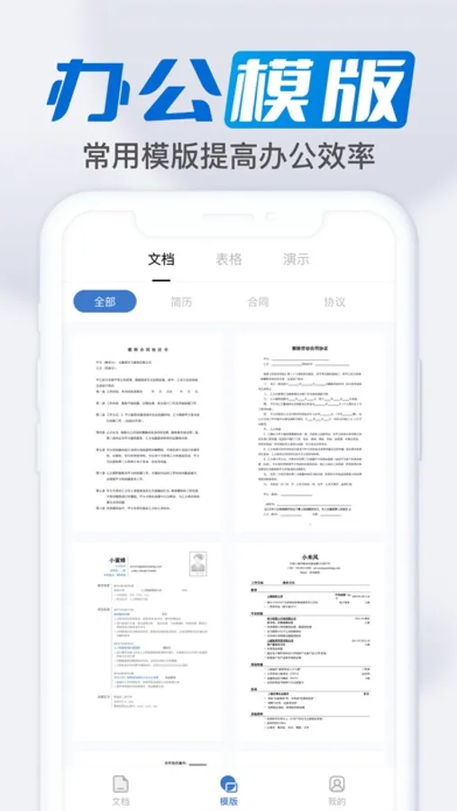 word文档手机版同时提供了各行各类的不同模板素材以供使用。包括简历、合同、考勤、工资表、活动策划等,轻松制作出你需要的类型文档!