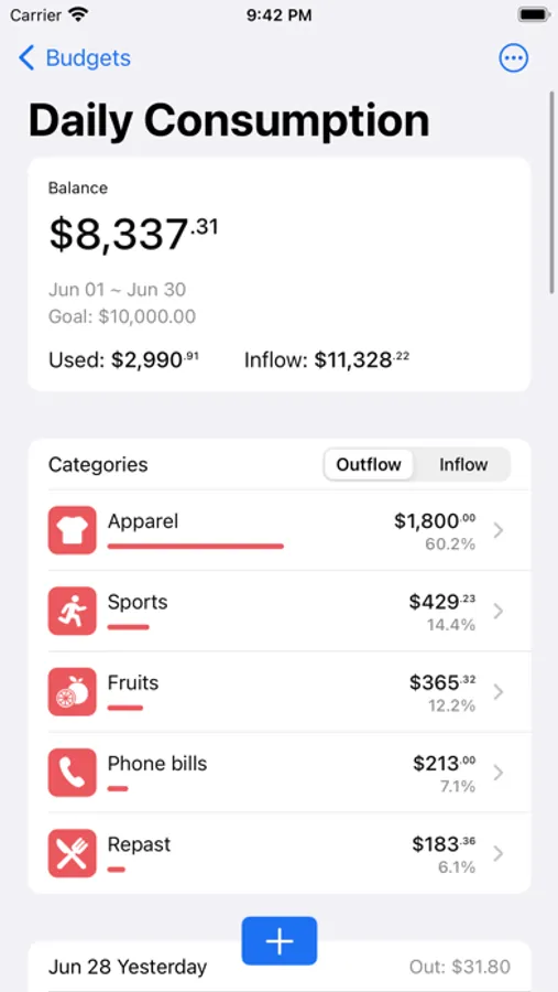 Based on this concept, we made this app which is different from other bookkeeping apps. The app is based on the core of "budget" and organizes "budget" and "category" through the bridge of "transaction".