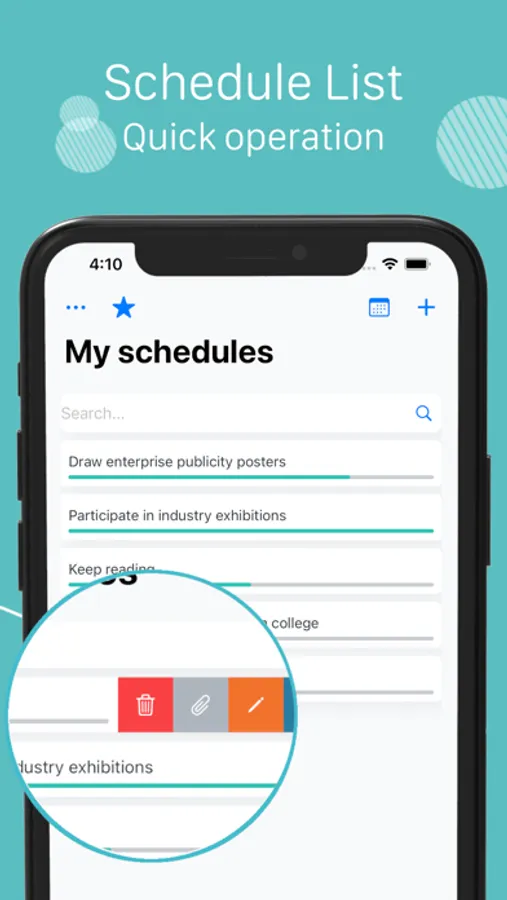 On the page of list , just slide a schedule to the left for a quick operation.