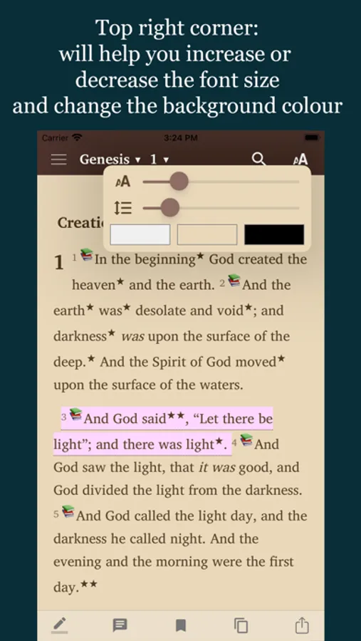 ► Bookmark and highlight your favorite verses, add notes and search for words in your Bible.
