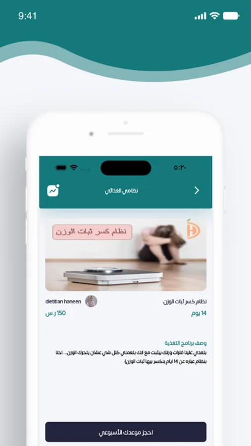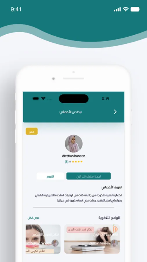 هو تطبيق الاول من نوعه بالمملكة يتيح المجال لجميع اخصائي التغذية بتزويد خدمات استشارات تغذية للمشتركين وذلك من خلال تطبيق سهل صمم خصيصا للمتابعة اليومية بين المشركين والاخصائيين..ماعليك سوى اختيار الاخصائي الذي ترغب بالمتابعة معه وسيقوم بدراسة ملفك وتزويدك بخطط غذائية تناسب احتياجاتك وظروف حياتك.