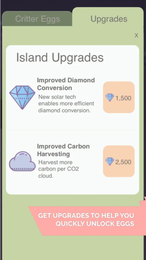 Need help protecting your island? Use your diamonds to summon help from the animals who live in this portion of the metaverse! You can use your diamonds to summon an egg, and a magical egg will appear. When you collect 5 eggs, you can turn them in to increase your carbon-pollution-fighting abilities!