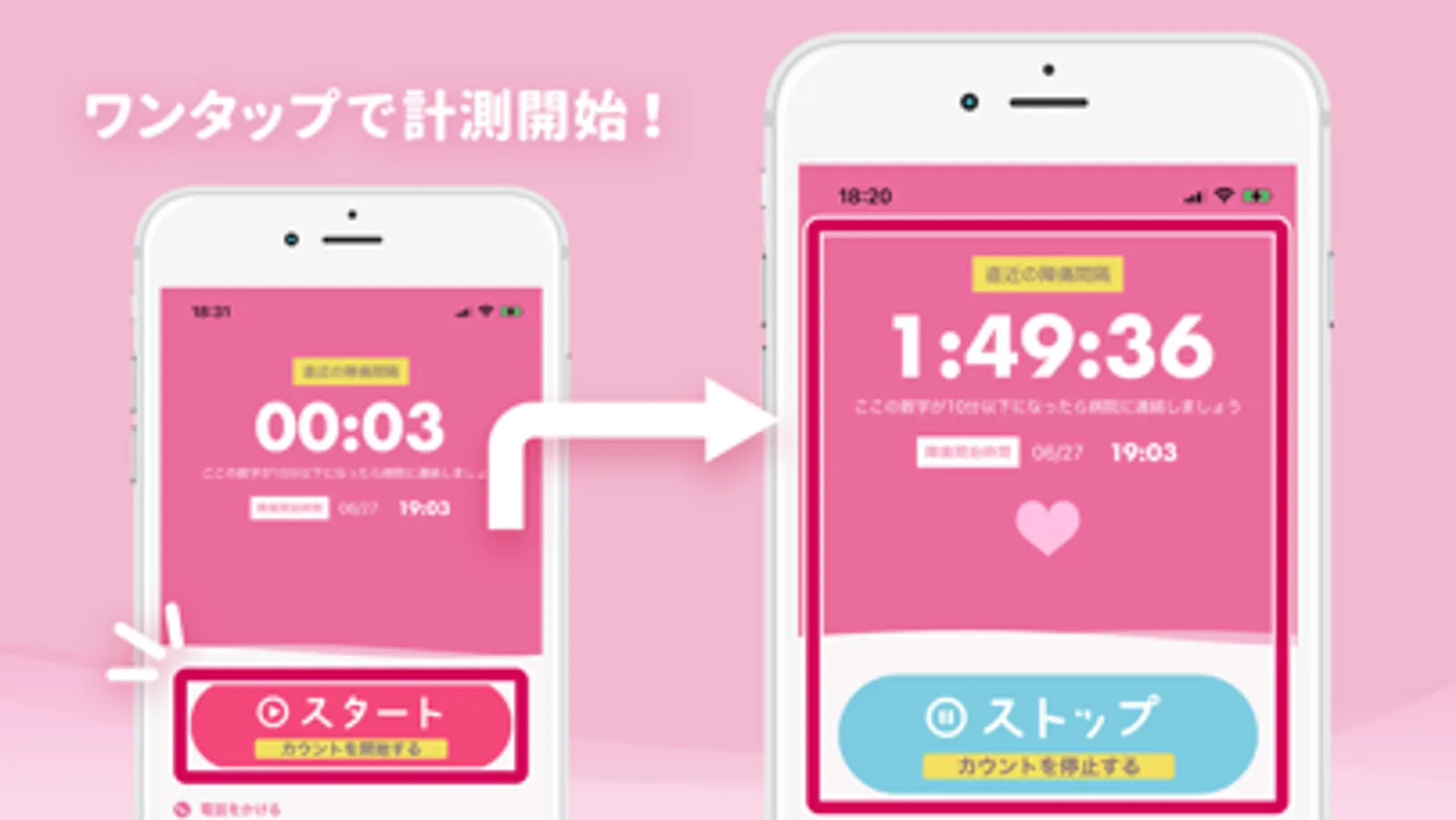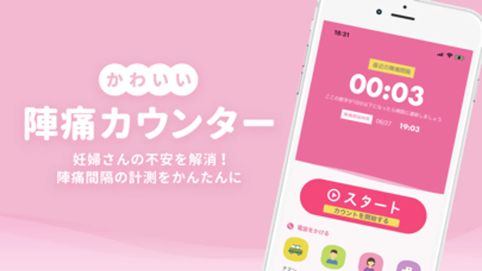 陣痛が発生した際にボタンをタップするだけで、かんたんに陣痛間隔のカウントすることができるタイマーアプリです。