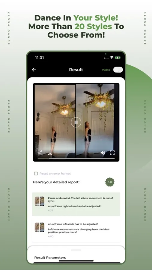 With Klosa Dance, you can compete in challenges against the world of dancers. The AI engine scores your routine in all styles of dance, with the best dancers showing off their routines in each challenge. See how well the best in each challenge performed by watching their winning dances.